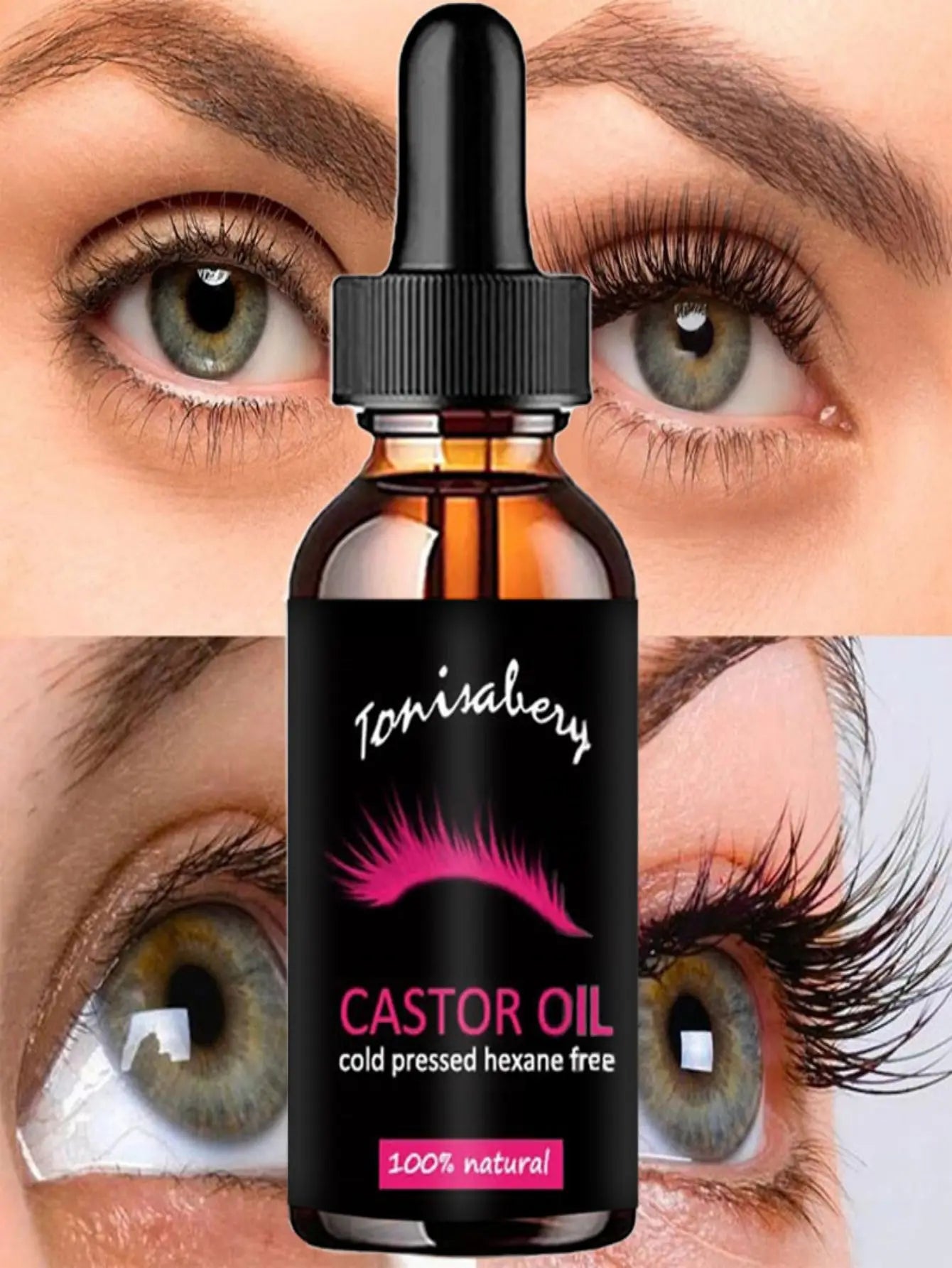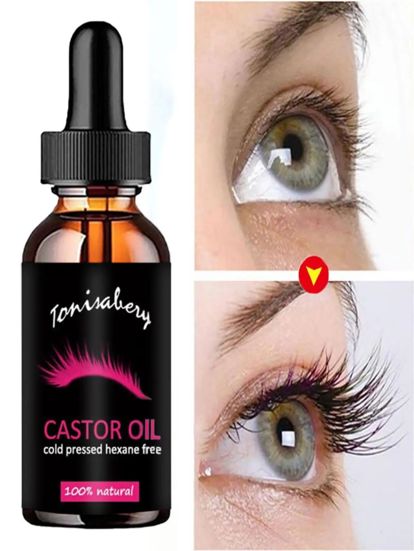 ▶EYELASHES GROWTH Castor oil stimulates eyelashesgrowth and can be used ashair oil to thicken eyelashes. ▶GREAT FOR NOURISHING HAIR FOLLICLES Castor oil works by moisturizing and deeply hydratingdry, brittle and tired lashes, giving them the nourishment they need to grow to their full length and height and making it easy for new lash growth to come through. ▶NOURISHMENT WITH VITAMINS Castor oil is actually jammed packed with fantastionutrients that promote natural lash growth. This thick oil is rich in fatty acids,antioxidants and proteins that help strengthen your lashes and create a naturally full lash line.