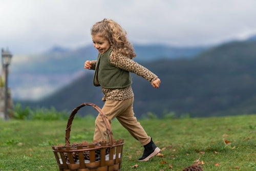 A beautiful shirt with an all-over contrast floral print in khaki or camel colours. Round neck, shoulder closure with olive wood buttons. Perfect with any garment.